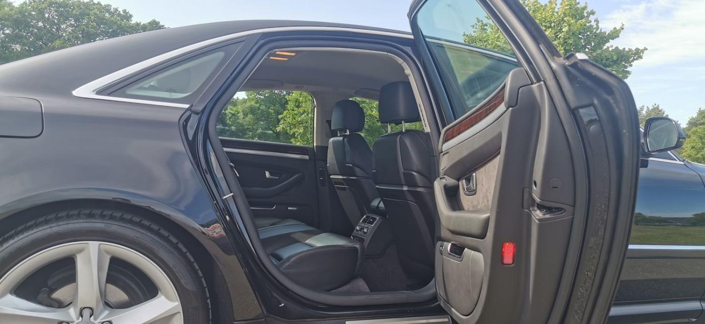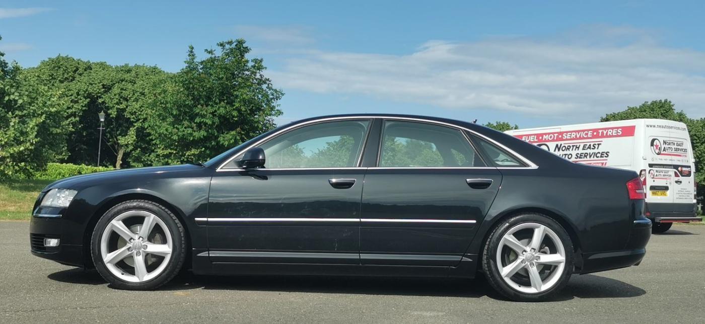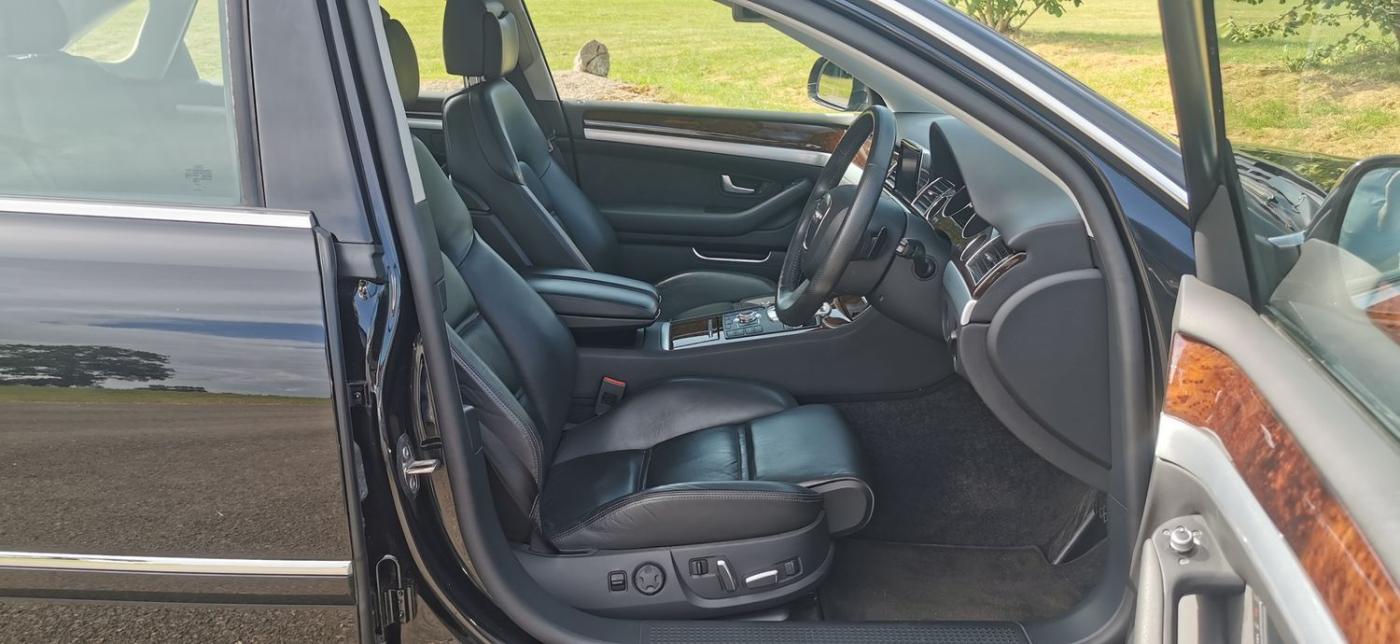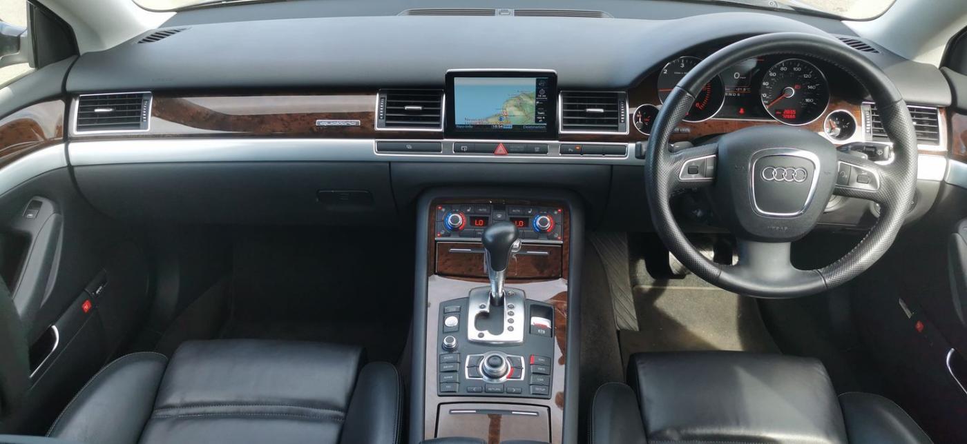 Registered On 25 November 2009 At Reading Audi Is This Immaculate Low Mileage Audi A8 3.0 TDI Sport Quattro 4dr Finished In A Stunning Colour Combination Of Metallic Black Exterior And Black Interior. This Vehicle Has Had 2 Owners From New With The Last Owner Since 2011 Who Has Absolutely Cherished This Car With No Expense Spared Hence Why It Looks And Drives Like A New Car. This A8 Has A Matching Set Of Pirelli P-Zero Tyres All Round Which Are Like New. This Is One Of The Last Of The A8 D3s To Leave The Production Line Being A '59' Plate Vehicle. The Car Comes With A Great Service History With Maintainance Invoices In A Seperate Folder And A Service Book. The Service Mileages Are 20711 Miles, 37412 Miles, 47,054 Miles, 52592 Miles, 60744 Miles, 72,601 Miles., The Specification Is Fantastic Which Includes 19" 5 Spoke Alloy Wheels, Keyless Entry/Keyless Start, Bi Xenon Headlamps With Cornering Function, Daytime Running Lights, Parking Aid With Display, Comfort Seats, Heated Seats, Electric Memory Seats With Lumbar Support, Electric Steering Column, Auto Lights, Rain Sensing Wipers, On Board Computer, 6 Speed Automatic Gearbox, Electronic Parking Brake, CD Changer, USB, DAB, Audi MMI, Satellite Navigation, Bluetooth, Four Zone Climate Control, Cruise Control, Twin Cupholders, Centre Armrest etc. This Audi A8 Drives Like It's Brand New And We Absolutely Mean That, The Engine Which Is Bullet Proof Performs Effortlessly And The Suspension Is Amazing. The Condition Of The Whole Car Is Incredible And Would Be Hard To Believe It Age As It Is In Excellent Condition All Round And The Same Goes For The Interior Which Is Beaikruflly Presented And No Wear To Show. If You Are In The Market For An Audi A8 Then This Example Will Certainly Not Dissapoint As Its An Amazing Car From Every Aspect. A Long MOT Is Remaining And Car Will Come Serviced For The Next Owner. Tyres Are Matching Pirelli P-Zeros Which Are Like New. Car Is Ready To Drive Away The Same Day. Nationwide Delivery Available, Finance Available Please Ask., Service history, Burgundy Full leather interior - Excellent Condition, Tyre condition Excellent, 5 seats, Metallic Black, Upgrades - 4 Spoke Multifunction Steering Wheel, 4-Spoke Multifunction Steering Wheel, Audi Music Interface, BOSE Surround Sound, Bluetooth Mobile Phone Connection, CD Autochanger, Comfort Seats, DAB Digital Radio Module, Sports Multifunction Steering Wheel, Sports Seats, 19in 6-Arm Design Alloy Wheels with PAX, 9Jx19in 5-Arm Design Alloy Wheels, Door Mirrors - Folding with Auto Dimming Function, Xenon Plus, Adaptive Air Suspension - Sport, Standard Features - 12V Power Socket in Boot, 19in x 8.5J 5 - Spoke Design Alloy Wheels with 255/40 R19 Y Tyres, 7in Colour Screen in Dashboard, 9 Loudspeakers, Acoustic and Optical Parking System - Front and Rear, Adaptive Light Including Xenon Headlights and LED Daytime Running Lights, Adaptive air Suspension - Sport, Advanced Key - Keyless Entry, Aluminium Gear Knob and Gaiter, Anti - Slip Regulation (ASR) Traction Control, Anti - Theft Alarm (Thatcham Category 1 Approved), Anti Lock Brake System (ABS), Ashtray and Cigarette Lighters, Auto - Dimming Rear View Mirror, Automatic 4-Zone Air-Conditioning, Body Coloured Bumpers, CD Autochanger (6 CD) in Glove Compartment with MMI, Centre Console, Centre Rear Seat Belt, Comfort Front Centre Armrest and Rear Centre Armrest, Cruise Control, Cup Holders x 4, DAB Digital Radio, DSP Sound System (230 Watt), Door Mirrors - Electrically Adjustable, Folding, Heated and Auto - Dimming with Memory, Double Glazing w. Additional Break-In Protection, Drivers Information System (DIS), Electric Child Locks for Rear Doors and Windows, Electric Front and Rear Windows, Electric Height and Reach Adjustment w. Memory Steering Column, Electric Lumbar Support Front Seats, Electric Rear-Window Blind and Manual Rear-Side Blind, Electromechanical Parking Brake, Electronic Brake - Force Distribution (EBD), Electronic Differential Lock (EDL), Electronic Immobiliser, Electronic Stability Programme (ESP), Fascia Trim - Vavona Wood, Assam Grey, Front Belt-Force Limiters, Front Fog Lights, Front Seats - Electrically Adjustable (14-Way) w. Memory, Front Sports Seats, Front and Rear Floor Mats, Full Size Airbag for Driver, Full Size Airbag for Passenger with De - Activation Switch, Green Tinted Glass, Head Restraints - Front (Active) and Rear, Headlight Washers, Heated Rear Window, Hinged Storage Compartment in Rear Doors, ISOFIX Child Seat Mounting - for Front Passenger and Outer Rear Seats, Interior and Exterior Lighting Package/Reading Lights, Keyless Go - Star / Stop Button, Light Sensor - Automatic Activation of Head Lights, Metallic Paint, Multi-Function Steering Wheel, Perforated Leather Steering Wheel, Rain Sensor - Automatic Activation of Front Wipers, Remote Central Locking, Satellite Navigation - DVD, Seats Heating for Front and Rear, Servotronic Steering - Power Steering with Speed - Dependent Control, Side Airbags Front/Rear, Side Protection Strips (Body Coloured) w. Aluminium Trim Strips, Sideguard Head Airbag System, Sports Steering Wheel, Third High Level Brake Light in Rear Window, Upholstery - Bi-Colour Valcona Leather, Voice Control System - Key Function of MMI, Windscreen Washer Jets, Heated, Appointments Only.,