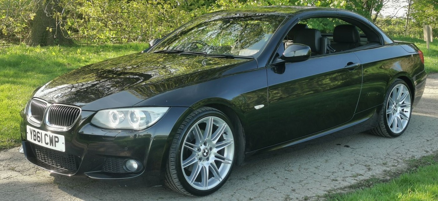 At Kass Classics We Are Offering This Stunning 2012 '61' Facelift Convertible BMW 3 Series 2.0 320d Sport Plus Edition Finished In 'Black Sapphire Metallic' Complimented With 'Black Dakota Leather' And 19" LA M Performance Multi Spoke Alloy Wheels., This BMW 3 Series Convertible Comes With A Great Specification Which Includes Navigation Package Business|M Sports Suspension|M Sport Edition|M Aerodynamics Package|M Leather Steering Wheel|Aluminium Interior Trim Strips|Isofix|Electric Heated Seats With Driver Memory|Bi Xenon Headlamps|Daytime Angle Eyes Running Lights|USB Audio Interface|Aux|Bluetooth Tel/Audio Nav| Parking Sensors|Cruise Control| Dual Zone Climate Control|Headlight Washers|On Board Computer|Electric Folding Mirrors|Dual Cupholders etc. This 320D M Sport Is Backed By A Full Service History With Services Carried Out On 18937|29673|40686|49967|58579|70208|74078|82612|84883 Miles., This 320D Convertible Is The Perfect Car For The Summer Which Offers Excellent Fuel Economy And Low Running Costs etc. The Roof Being A HardTop Is Perfect For All Year Round. We Highly Recommend Viewings On This Lovely BMW As It Represents Amazing Value! Don't Miss Out. VISIT WWW.KASSCLASSICSAUTOS.CO.UK, NO DEPOSIT LOW RATE FINACE, PART EXCHANGE WELCOME! INDOOR VIEWING, BOOK YOUR APPOINTMENT! NATIONWIDE Delivery Available Immediately Please Ask. WE ARE A SMALL FRIENDLY FAMILY BUSINESS WHO STRIVE TO PROVIDE THE BEST FOR OUR CUSTOMERS AND PUT 100% EFFORT INTO MAKING A GREAT EXPERIENCE FOR YOU FROM START TO FINISH. WE CAN COLLECT FROM LOCAL TRAIN STATION., Full service history, Excellent bodywork, Black Full leather interior - Excellent Condition, Tyre condition New, 4 seats, Metallic Black, Upgrades - PDC - Park Distance Control - Front and Rear, Voice Control - Phone, Seats - Front Heated, Enhanced Bluetooth Telephone Functionality with USB Audio Interface and Voice Control, Wind Deflector, USB Audio Interface, Door Mirrors - Electric Folding, Servotronic Steering, Armrest - Front with Sliding Adjustment, Interior Trim - Fine Brushed Aluminium, Dakota Leather - Black with Royal Blue Stitching, Door Mirrors - Folding - Automatically Dimming, Standard Features - 19in Alloy Wheels - Light M Double Spoke - 313M, ABS - Anti Lock Braking System, ASC - Automatic Stability Control, Air Conditioning - Automatic - Dual Zone, Airbags - Driver, Airbags - Driver and Front Passenger Head, Airbags - Driver and Front Passenger Side, Airbags - Passenger, Alarm System Thatcham 1 with Remote Control, Armrest - Front Centre, Automatically Dimming Rear View Mirror, Auxiliary Input, BMW Assist, BMW Assist Online Portal, BMW Navigation System, BMW Online services, BMW Professional Radio - Single CD and MP3, BMW TeleServices, CD Changer Preparation, Check Control Warning System, Child Seat ISOFIX Attachment - Front and Rear, Cruise Control, Cup Holders - Front, DBC - Dynamic Brake Control, DSC - Dynamic Stability Control - Stabilises the Vehicle in Extreme Situations - Controls Traction, DTC - Dynamic Traction Control, Dark Aluminium glacier Silver Interior Trim, Door Mirrors - Electric and Heated, Door Mirrors - Electrically Adjustable, Door Mirrors - Heated, Dynamic Brake Lights, EBD - Electronic Brake-Force Distribution, Electric Windows - Front and Rear with Open-Close Fingertip Control, Extended Lighting, Exterior Trim - High-Gloss Shadowline, Front Fog Lights, Headlights - Washer System, Heated Windscreen Washer Jets, Height Adjustable Drivers Seat - Manual, LED Light Elements, M Aerodynamic Bodystyling, M Sport Suspension, Media Package - BMW Business, Multifunction Controls for Steering Wheel, OBC - On-Board Computer, PDC - Park Distance Control - Rear, Power Steering - Electric, Power Steering - Hydraulic, Rear Seat Easy Access System, Remote Control Locking, Rollover Protection System, Run Flat Tyres, Seat Adjustment - Front Electric with Driver Memory, Smokers Package, Sport Seats - Front, Steering Column with Manual Reach and Rake Adjustment, Steering Wheel - Sport Leather Multifunction - 3 Spoke, TPWS - Tyre Pressure Warning System, Xenon Headlights, Appointments Only.,