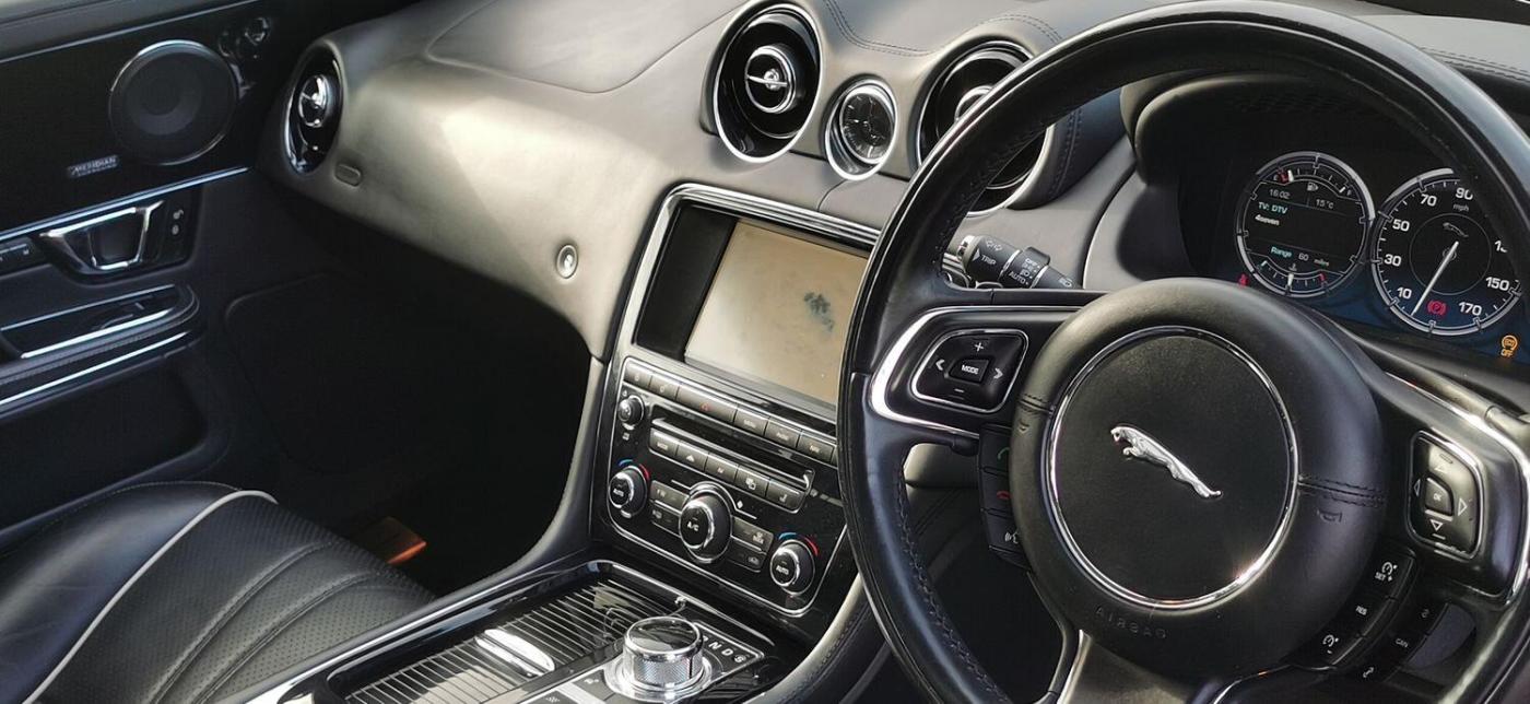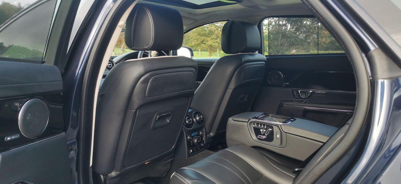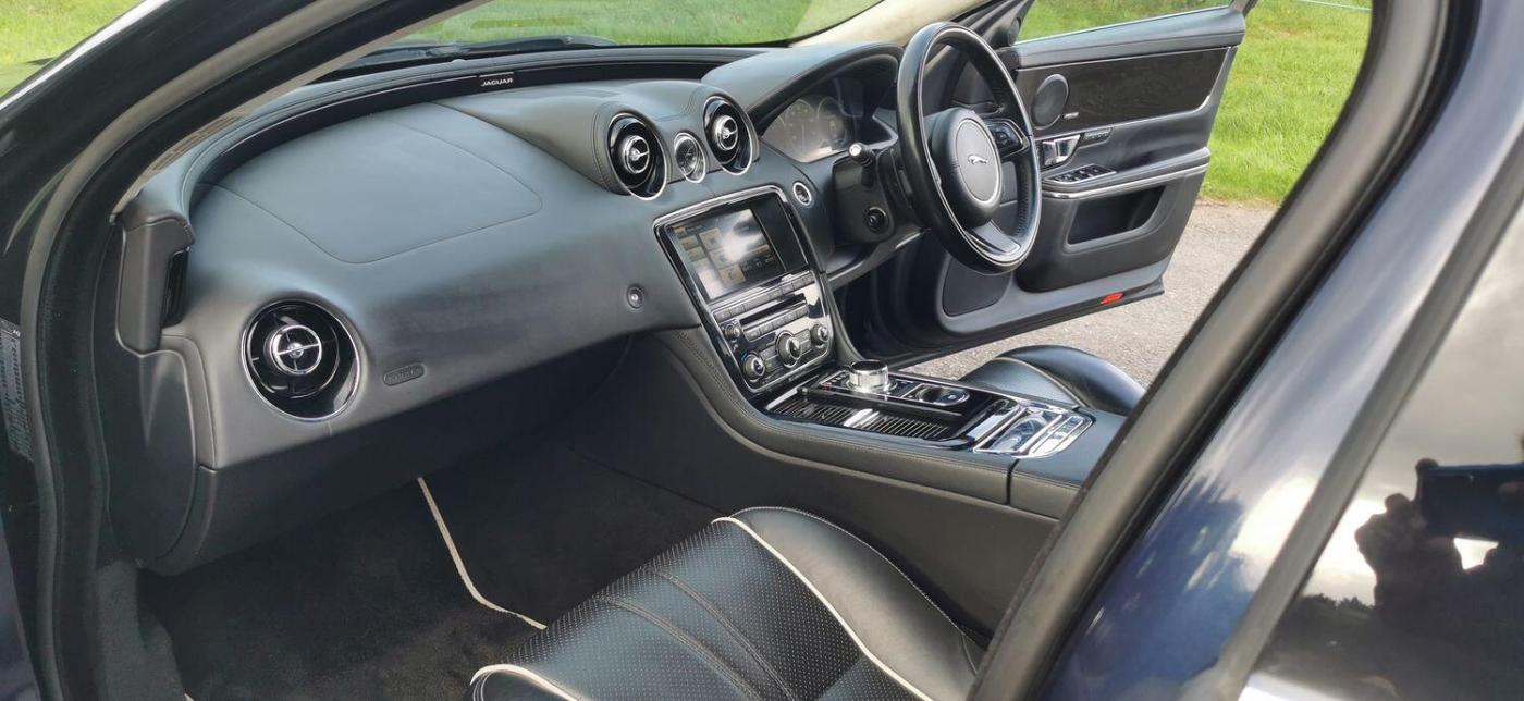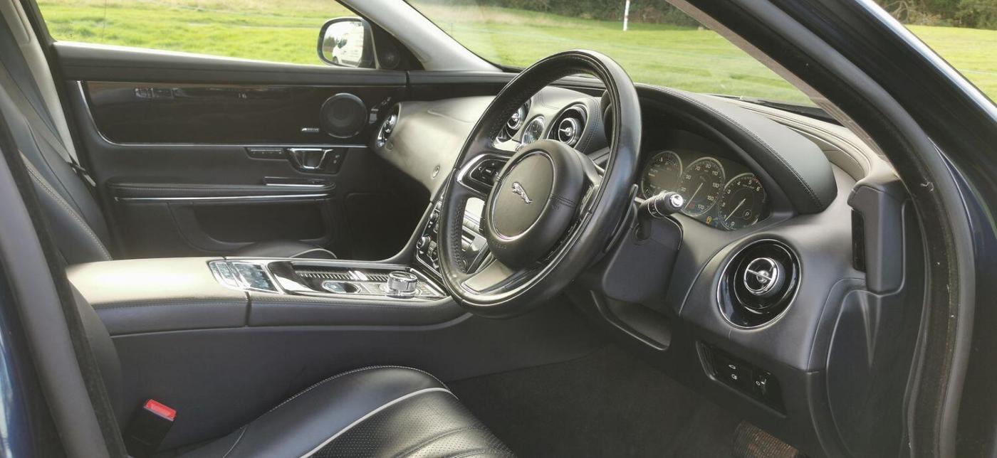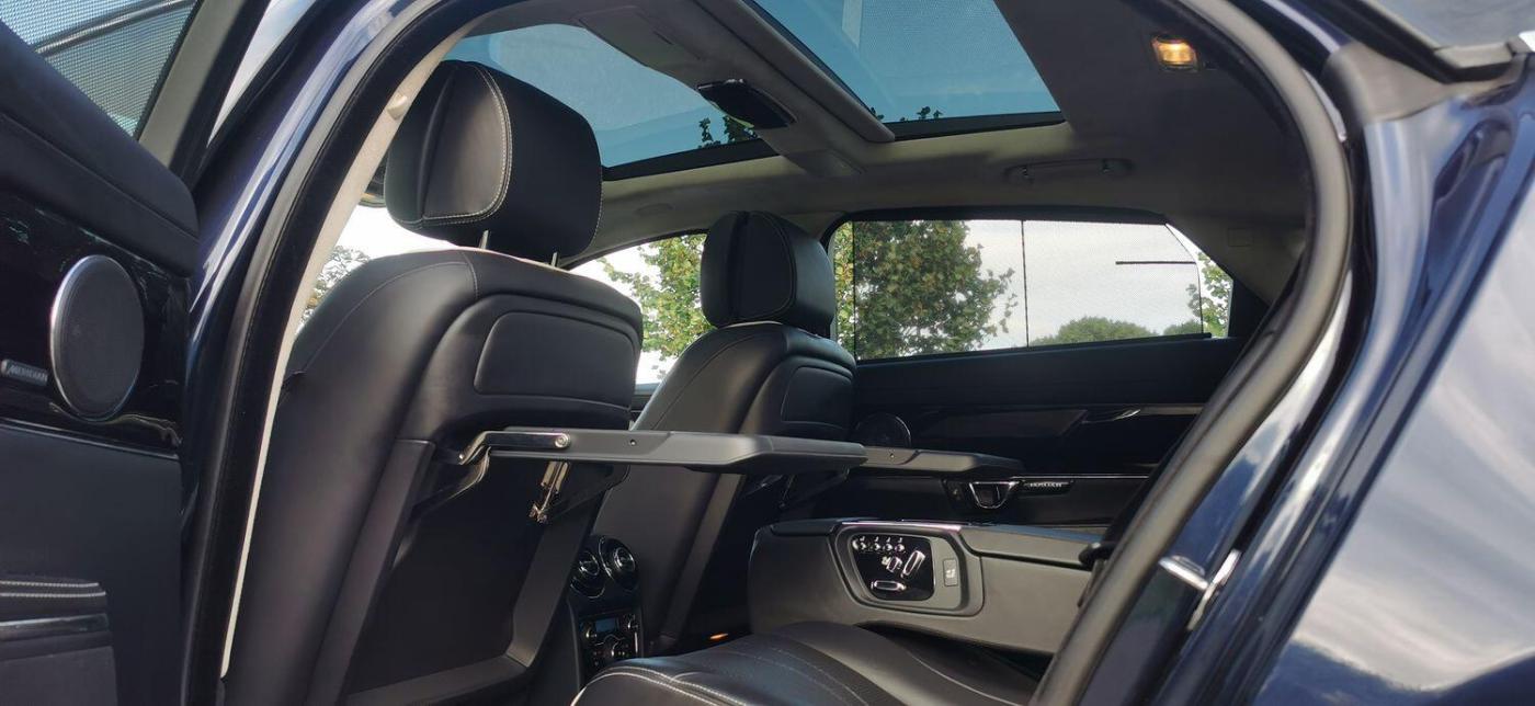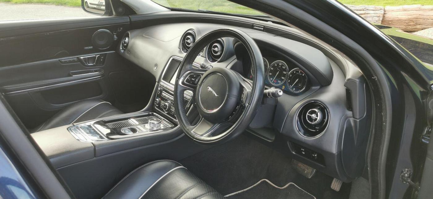 Registered On 17 November 2014 Is This Beautifully Presented Jaguar XJ 3.0d V6 Portfolio Auto 8 Speed (s/s) 4dr (LWB) Finished In 'Dark Sapphire Blue Pearlescent' Complimented With 'Ebony Leather With White Contrast Stitching'. This Jaguar XJ Is No Ordinary XJ Thanks To Its Massive Specification Which Is Very Rarely Seen! This Is The XJ L And The Specification Includes Adaptive Cruise Control, Rear Business Tables, Rear Electric Seats With Massage Function, Foot Rests, Vanity Mirrors, Digital TV With 50/50 Split View, Meridian Surround Sound System, DAB, USB, Aux, CD, Radio, Bluetooth Tel/Audio, Sat Nav, Front + Rear Heated And Cooled Seats, Four Zone Climate Control,Electric Heated Steering Wheel, Paddle Shifters, On Board Computer, Digital TFT Screen, Blind Spot Monitor, Auto Beam Function, Bi Xenon Headlamps, Keyless Entry/Go, Reverse Camera, Parking Aid, Twin Glass Panoramic Roof, Electric Folding Mirrors, Electric Boot, Dynamic Mode, Cupholders X4, Electric Seats With Memory Function, Lumbar Support, Electric Bolsters, Comfort Adjustable Headrests, Spare Wheel Plus So Much More, The List Is Endless. This Stunning XJ Comes With A Full Service History Record With Services Carried Out At 1516 Miles, 2096 Miles, 21614 Miles, 35310 Miles, 45203 Miles, 59228 Miles, 60365 Miles, 65583 Miles, 77219 Miles. As Part Of Preparation We Have Had The Vehicles Serviced By Our Local Jaguar Specialist Alongside The Air Conditioning Regas. This Jaguar XJ Drives Absolutely Amazing With No Exceptions And The Spec Is Just Wow! Rarely Ever Seen, It Is Full Of Optional Extras Which Makes It So Special. The Colour Combination Is Amazing. Being A Facelift Version This Car Has The 8 Speed Automatic Gearbox Which Is Ever So Smooth And On Long Journeys Achieves In Excess Of 60 MPG Which Is Incredible For A Car Of This Calibre. Don't Miss Out On This Stunning Machine As It Won't Remain With Us For Very Long. VISIT WWW.KASSCLASSICSAUTOS.CO.UK, PART EXCHANGE WELCOME! INDOOR VIEWING, BOOK YOUR APPOINTMENT! NATIONWIDE Delivery Available Immediately Please Ask., Full service history, Excellent bodywork, Black Full leather interior - Excellent Condition, Tyre condition Excellent, 5 seats, Blue, Upgrades - Adaptive Cruise Control with Forward Alert with Advanced Emergency Brake Assist, Audio Equipment - Meridian Reference Audio System 1300W, Blind Spot Monitor, Digital Television Tuner, Multimedia System - Front Dual View Functionality with Whitefire Emitter and 1 Set of Headphones, 20in Alloy Wheels - Kasuga Polished, Air Quality Sensing with Auto Recirculation, Electric Rear Window Sunblinds, Illumination Pack, LED Rear Reading Light, Premium Rear Seat Package 1, Premium Rear Seat Package inc Dual View, Rear Business Tables, Rear Seat Package, Seats - Driver and Passenger Electric 20x20-Way Adjustment with Memory and Massage, Semi-Aniline Leather Seat Pack, Veneer - Piano Black, Standard Features - 20in Alloy Wheels - Kasuga with Painted Finish, 4-Zone Climate Control, 8in Full colour Touch-Screen Display, Active Ventilated Front Seats, Active Ventilated Rear Seats, Adaptive Dynamics, Air Particle and Odour Filtration, Auto-Dimming Interior Rear View Mirror, Automatic Headlight On, Automatic Headlight Washers, Bluetooth Audio Streaming, Bluetooth Connectivity, Cruise Control, DAB - Digital Audio Broadcasting with Radio Receiver, Door Mirrors - Electric Adjustment Heated Power-Folding - Auto-Dimming with Memory Function, EBD - Electronic Brake-Force Distribution, ESP - Electronic Stability Control, Electric Rear Window Sunblind, Front Media Interface, Front Parking Aid with Touch Screen Visual Indicator, Headlights - Adaptive Front Lighting-Cornering Lights-Automatic Levelling, Headlights - Intelligent High Beam, Headlights - Xenon, Headlining - Suedecloth - Jet, Illuminated Front Stowage Tray, Illuminated Rear Vanity Mirrors, Interactive Voice Control, Jaguar Smart Key System with Keyless Entry, JaguarDriver Control with Winter Mode, Manual Rear Side Window Sunblinds, Multimedia System, Panoramic Glass Roof - Tilt-Slide Front Section with Electric Blinds, Pedestrian Contact Sensing and Deployable Bonnet, Perimeter Alarm, Power Boot Lid, Privacy Glass - Rear of B Post, Rear Parking Aid, Rear View Camera, Satellite Navigation, Seats - Driver and Passenger Electric 18x18-Way Adjustment, Seats - Soft Grain Leather Rear Bench, Self-Levelling Rear Suspension, Soft Door Close Double Locks, Steering Column - Electric Adjustment for Height and Reach with Entry and Exit Tilt-Away, Tailpipes - Twin with Chrome Finishers, Trac DSC - Dynamic Stability Control with 3 Setting Levels, Tyre Pressure Monitoring System, Veneer - Gloss Figured Ebony, Appointments Only.,