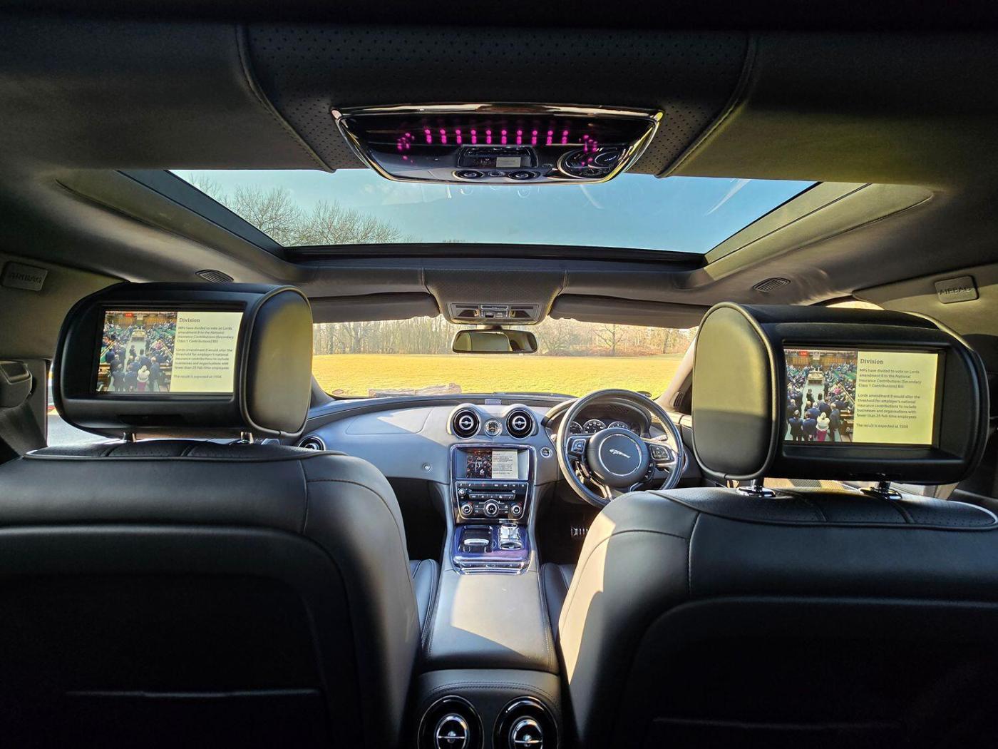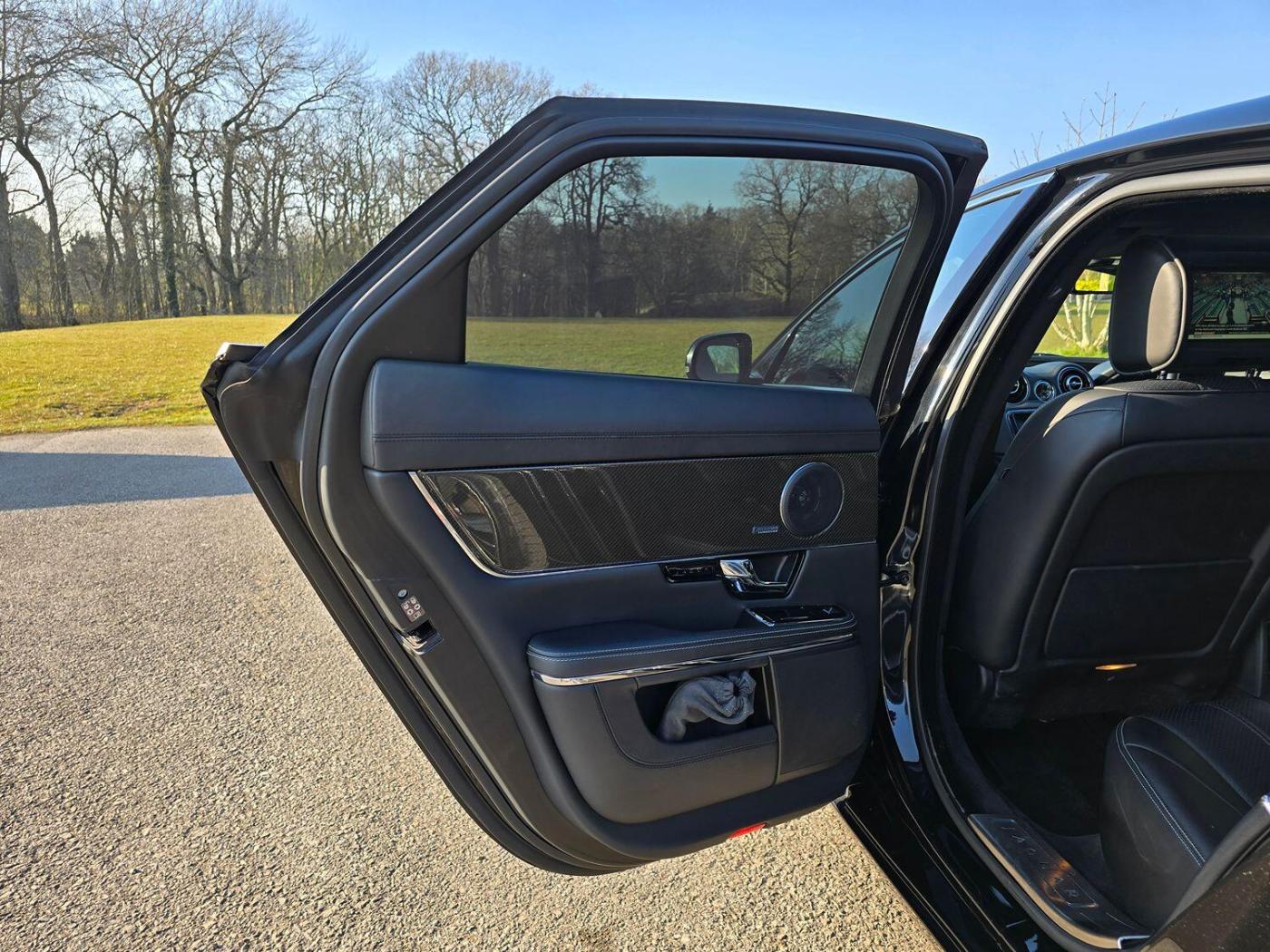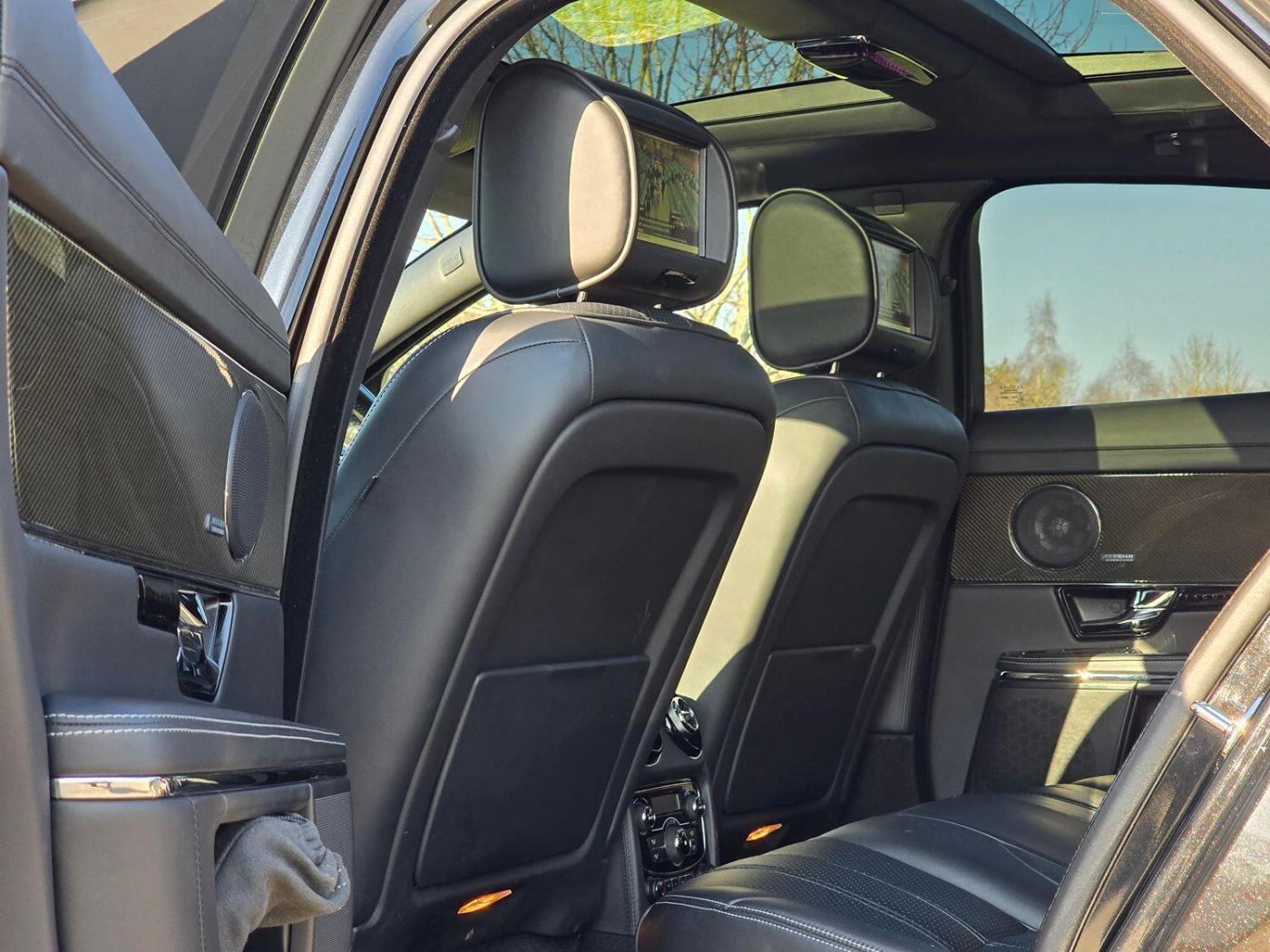 At Kass Classics We Are Offering This Beautifully Presented Facelift 2014 '14' Jaguar XJ 5.0 V8 Supersport Auto (s/s) 4dr. This Jaguar XJ Supersport Was An Ex Jaguar Startstone Dealer Demonstrator And Then Only One Sole Owner Since It Was 3 Months Old. This Is A Local Car To Us And Has Only Ever Been Serviced And Maintained By The Local Jaguar Main Dealer And Then Jaguar Specialist. The Service Mileages Are Pre Delivery Inspection 5 Miles, 3745 Miles, 9545 Miles, 16907 Miles, 24366 Miles, 31367 Miles, 37989 Miles, 42605 Miles, 48602 Miles, 51096 Miles, 54191 Miles, 55884 Miles Including New Front Brakes. All Services Are Logged Onto The Jaguar Service History Database And We Have All The Records Present For The New Owner. The Supersport XJ Is An Astonishing Vehicle With That Thrilling 5.0 V8 Supercharged Engine Putting Out Over 500BHP. This Is What You Would Class As A Super Limo As It Offers Superb Performance But Then At The Same Time Pure Comfort And Luxury With All The Feautures You Could Want In A Car. This Particular XJ Supersport Comes With The Leather Trimmed Headlining, Rear Entertainment System (Two Individual Rear TV Screens With Indicidual Wireless Headphones) With Live Digital TV And DVD Which Will Keep The Rear Occupants Entertained While On The Move. We Also Have The Meridian Surround Sound System Offering High Quality Sound Output Which We Believe Is One Of The Best Premium Sound Systems Available. The Heated And Ventilated Seats All Round With The Electric Twin Glass Panoramic Roof Are A Nice Touch On The XJ Making Sure Your Comfortable In All Seasons All Year Round With A Bonus Of The Heated Steering Wheel And Front Massage Seats. This XJ Also Comes With The Illumination Pack Which Means The Side Kick Plates, Heater Vents And Boot Emblem All Glow Blue In The Dark Adding That Superior Finish To The Interior At Dark. The Specification List Is Massive On This XJ. The Drive Is Absolutely Phenomenal Thanks To That Glorious V8 Powered Engine And Buttery Smooth Suspension Ironing Out Any Bumps On The Road. Visit www.kassclassicsautos.co.uk, Full service history, Excellent bodywork, Black Full leather interior - Excellent Condition, Tyre condition Excellent, 5 seats, Metallic Black, Upgrades - 20in Alloy Wheels - Venom, Exterior Sports Pack, Privacy Glass - Rear of B Post, Air Quality Sensing with Auto Recirculation, Seats - Driver and Passenger Electric 20x20-Way Adjustment with Memory and Massage, Tipped Leather Pack, Veneer - Carbon Fibre, Standard Features - 12.3in Full Colour TFT, 20 Speakers including 2 Subwoofers, 20in Alloy Wheels - Mataiva, 3-Flash Lane Change Indicators, 4-Zone Climate Control, 8in Full colour Touch-Screen Display, ABS - Anti-locking Braking System, ASL - Automatic Speed Limiter, Acoustic Layer Windshield, Active Differential Control, Active Ventilated Front Seats, Active Ventilated Rear Seats, Adaptive Dynamics, Air Filtration, Airbags - Driver, Airbags - Front Side, Airbags - Passenger, Airbags - Side Curtain, Approach Illumination - Automatic via Remote, Armrest, Audio Equipment - Meridian Surround Audio System 825W-Radio-CD-MP3, Auto-Dimming Exterior Mirrors, Auto-Dimming Interior Rear View Mirror, Automatic Headlight On, Automatic Headlight Washers, Auxiliary Power Point in Rear, Auxiliary Power Sockets, Bluetooth Audio Streaming, Bluetooth Connectivity, Cornering Lights, Cruise Control, DAB - Digital Audio Broadcasting with Radio Receiver, Digital Television Tuner, Door Puddle Lights - Front and Rear, Driver and Front Passenger Sun Visors with Illuminated Vanity Mirrors, Driver and Passenger Memory Seats, Drivers Foot Rest, Dual 8in LCD Screen with Rear Media Interface, EBA - Emergency Brake Assist, EBD - Electronic Brake-Force Distribution, EPB - Electronic Parking Brake - Drive Away Release, Electric Windows, Exterior Mirrors - Electric Adjustment Heated Power-Folding, Four Zone Temperature Control - Driver Passenger and Independent Control for Rear Passengers, Front Centre Console with Storage Compartment/Armrest, Front Media Interface, Front Parking Aid, Front and Rear Courtesy Footwell Lights, Gloss Rich Oak Inlay - Straight, HDD Hard Disk Drive, Headlights - Adaptive Front Lighting/Cornering Lights/Intelligent High Beam, Headlights - Bi-Function HID Xenon with LED Daytime Running Lights, Headlights - Intelligent High Beam, Heated Rear Window with Timer, Heated Steering Wheel, Humidity Control, ISOFIX Rear, Illuminated Air Vents Front and Rear, Illuminated Front Stowage Tray, Illuminated Stainless Steel Tread Plates, Intaglio - Unique to Supersport, Interactive Voice Control, Jaguar Premium Analogue Clock, Jaguar Sequential Shift - Steering Wheel One Touch Paddles, Jaguar Smart Key System with Keyless Entry, JaguarDrive Control with Winter Mode and Dynamic Mode, JaguarDrive Selector, JaguarSense - Overhead Light Console, LED Tail Lights, MP3 Format Reader, Multimedia System, Multimedia System - Front Dual View Functionality with Whitefire Emitter and 1 Set of Headphones, Multimedia System - Rear Seat Entertainment, Panoramic Glass Roof - Tilt-Slide Front Section with Electric Blinds, Pedestrian Contact Sensing and Deployable Bonnet, Perimeter Alarm, Power Boot Lid with Customisable Height Adjustment, Power Steering - Speed Sensitive, Premium Carpet Mat Set - Front and Rear, Rain Sensing Windscreen Wipers, Rear A/C Vent Area in Leather, Rear Armrest with Twin Cupholders, Rear Climate Control, Rear Coat Hooks, Rear Parking Aid with Touch Screen Visual Indicator, Rear View Camera, Remote Control Boot Release, Remote Control Central Locking with Dead Locking and Drive-Away Locking, Remote Controls for Audio System, Remote Power Amplifier, Satellite Navigation, Seats - Adjustable Bolster, Seats - Driver and Passenger Electric 18x18-Way Adjustment, Seats - Front/Whiplash Protection System, Seats - Lumbar Support - Driver-Passenger-4 Way Power, Seats - Powered Headrests/ Cushion Extension/ Adjustable Bolsters, Security System, Side Power Vents - B